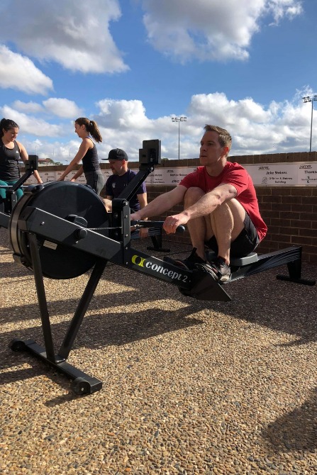 “For this session, we were divided into teams of three (except for me, I was in a team of two with GT, what a stitch up!). We then headed out on a 400-metre warm up run. Once this was completed, we needed to complete three kilometres on the rower in the team. When we were not rowing, we were holding a 20kg barbell over our heads. It was then onto the assault bike, the most dreaded of all cardio equipment.