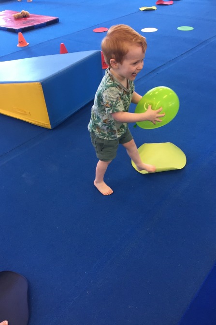 Usually a bit shy in new situations and around new people, he quickly warmed up with the friendly instructors and clear guidance on activities. He even challenged himself, stepping outside his comfort zones climbing all the way up a wall-mounted ladder and balance beam. He loved “nastics” and is eager to go back.