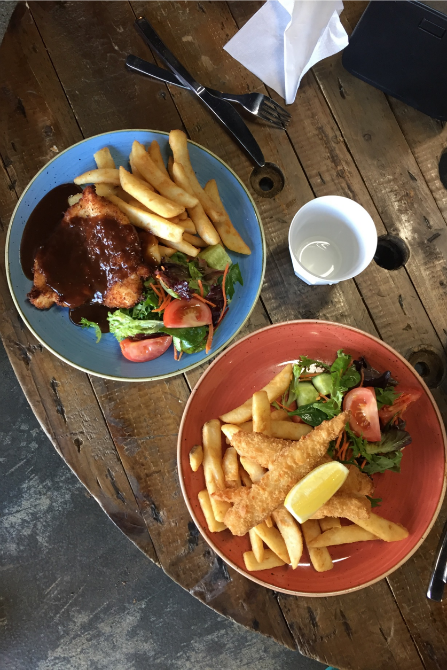 Georgie devoured a pizza (before it could be captured for the ‘gram!) while the big kids went for fish and schnitzel.