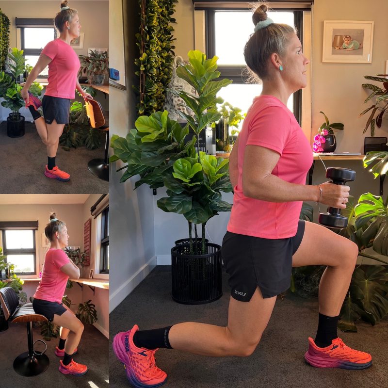 • Lunge – holding onto desk