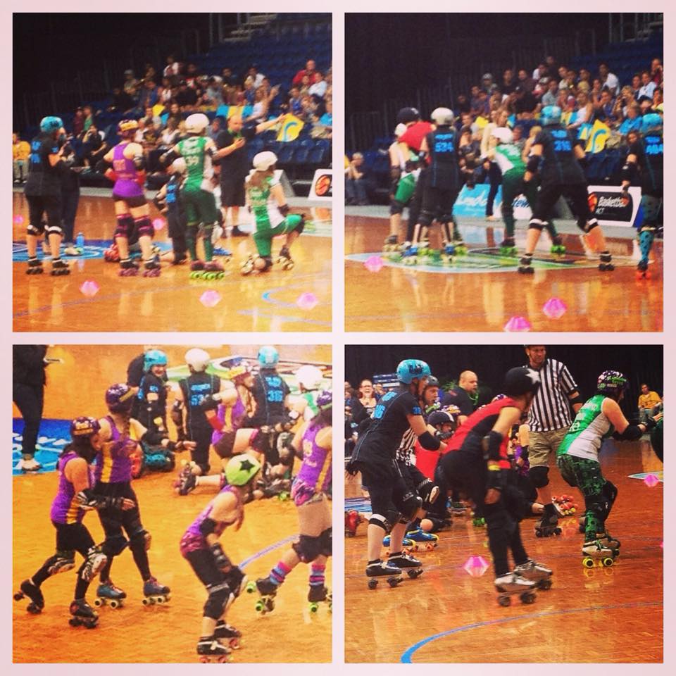 My first experience with roller derby was back in April 2011 when I managed to buy tickets to the Red Bellied Black Hearts V Brindabelters. I was so excited that there was a sport that combined roller skates and body contact, I signed up to the mailing list that night and was lucky to get into the social skate and then ‘fresh meat’ program.