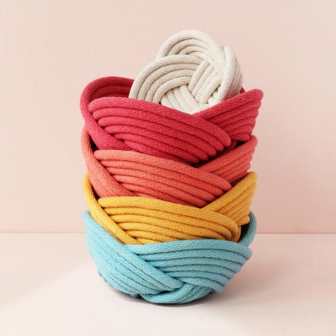 Michelle’s process is “very labour intensive,” incorporating traditional methods of knotting, weaving and sourcing local made rope and hand dying her own colour range.