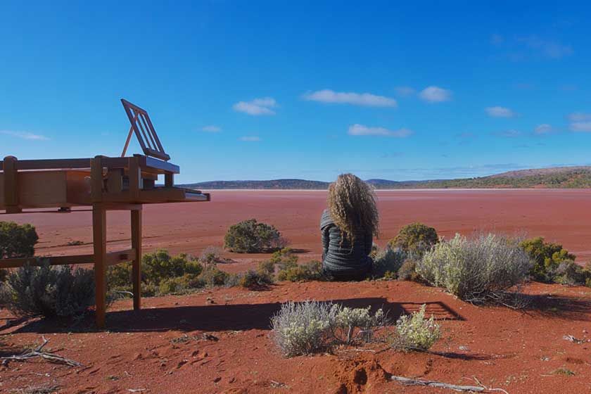 Ukrainian-born, Australian-based virtuoso pianist Sonya Lifschitz performs in “duet” with herself in this groundbreaking collaboration with composer Damian Barbeler and media artist Tim Gruchy. Through innovative technology, watch Sonya perform alongside recordings of herself playing in Australia’s wild places, including the breathtaking salt Lake Gairdner. Known for her fiercely imaginative, daring collaborations across film, animation, spoken word, visual and performance art, Sonya’s Duet for One is a feast for both eyes and ears!