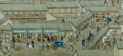 The bustling capital, a detail from The Emperor Departs from Beijing, the first scroll in the series Emperor Qianlong’s Southern Inspection Tour, 1770s. National Museum of China.