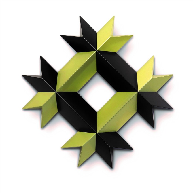 “What is new about this exhibition is that I am using separate components, instead of a single sheet of material. This allows me to use more than one colour in one piece, which provides a never-ending play on variations.