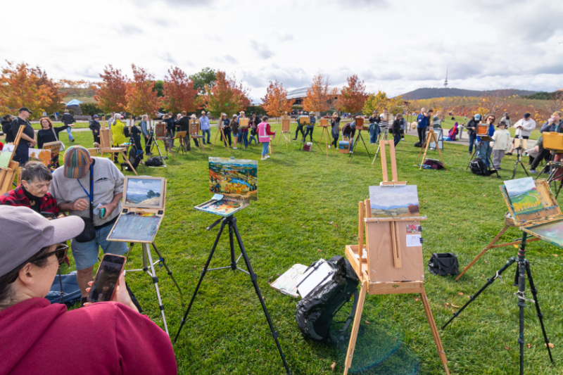 Many of the works will have been painted only hours earlier, offering a fresh and immediate interpretation of Canberra’s autumn landscape.