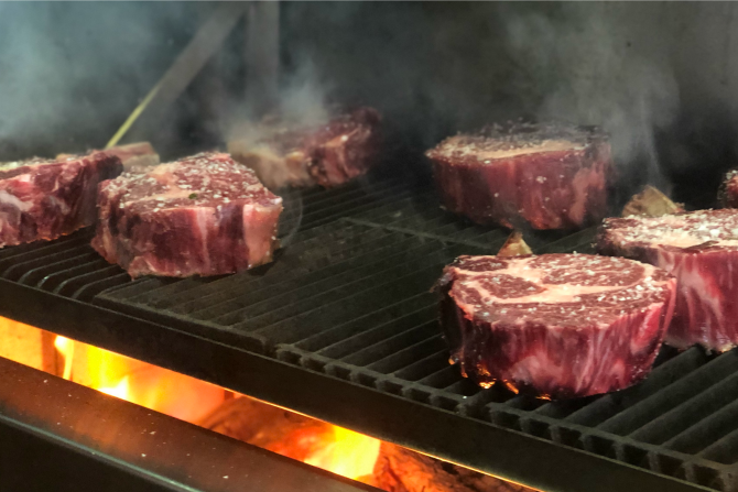 Tucked away behind the blackboard menu is the slim, dark-tiled kitchen where a giant custom-built flame grill sits in pride of place. But what committed foodies might be most excited about is the bar alongside—the Market Grill’s private Kitchen Table.