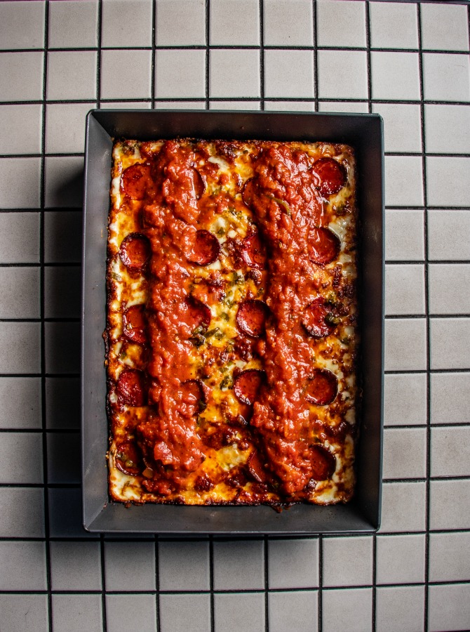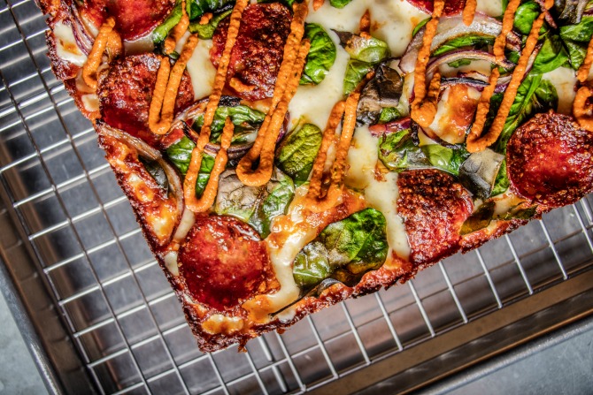So what exactly is DSP? The pizza gets its name from the square pans in which it’s cooked, inspired by auto parts from the Motor City.