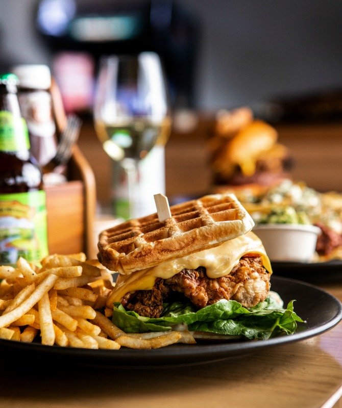 Keen racing fans will appreciate the direct views of a screen from every seat and a whopping 4.5-metre main screen at Bleachers Sport Bar.