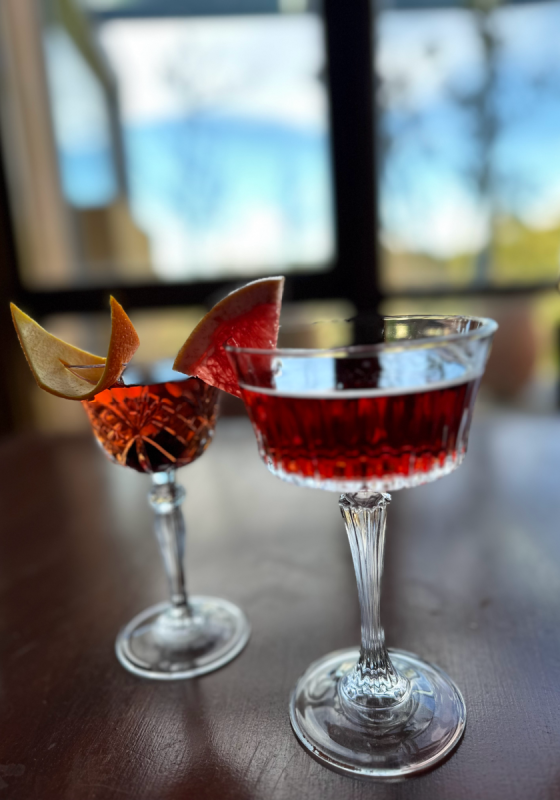 The Coastal Gibson is an interesting arrangement of Seven Seasons Green Ant Gin with Dolin Dry Vermouth, Fino Sherry and saltbush brine and a Red Gum Manhattan of Archie Rose Rye Whiskey, Dolin Sweet Vermouth and bush tomato syrup.