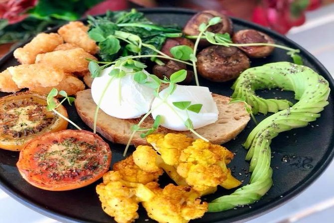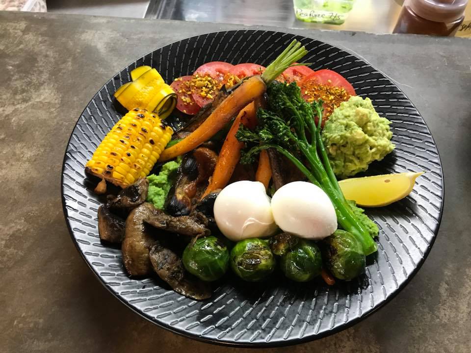 For those who like a bit of spice, Kith and Nosh’s nourish plate will perk up your tastebuds. It comes with miso roasted eggplant, maple and smoked paprika roasted pumpkin, avocado, green pea puree, fresh tomato with house dukkha, garlic mushrooms and chargrilled vegies, topped with pesto oil.