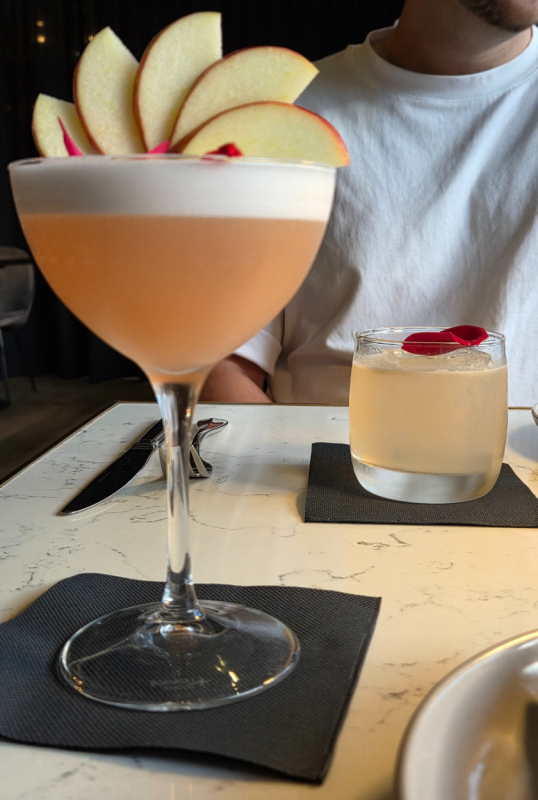 General Manager Ton Supwanakit says that diners can expect to be welcomed by cocktails – for her, The Forbidden Petal of hibiscus-infused gin, Fuji apple, rose petal, mixed citrus and whites, and for him, Crimson Hearts of Joven Mezcal, Luxardo Maraschino, yellow chartreuse, rose petal and lime.