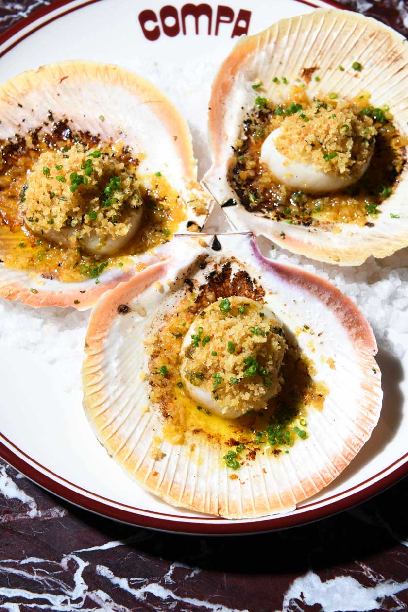 The evening’s menu includes arancini 4 formaggi, scallops with anchovy butter, duck lasagna, Angus striploin and  Basque cheesecake as the dessert.