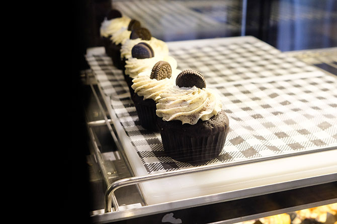 Behind a cabinet packed with treats like Nutella doughnuts and Cookies and Cream Cupcakes, baristas pour shot after shot of caffeinated goodness. While fast, friendly service is the café’s main focus, there will also a small takeaway menu on offer after the business settles in.