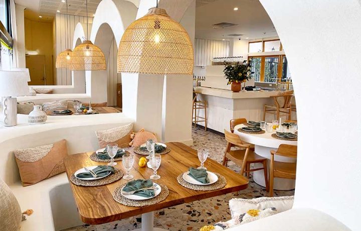 But with finishing touches continuing to be put on the space, we have to wait until August until we can wander those sunny terrazzo tiles and take out a curved booth of Greek goodness for a long lunch or dinner.