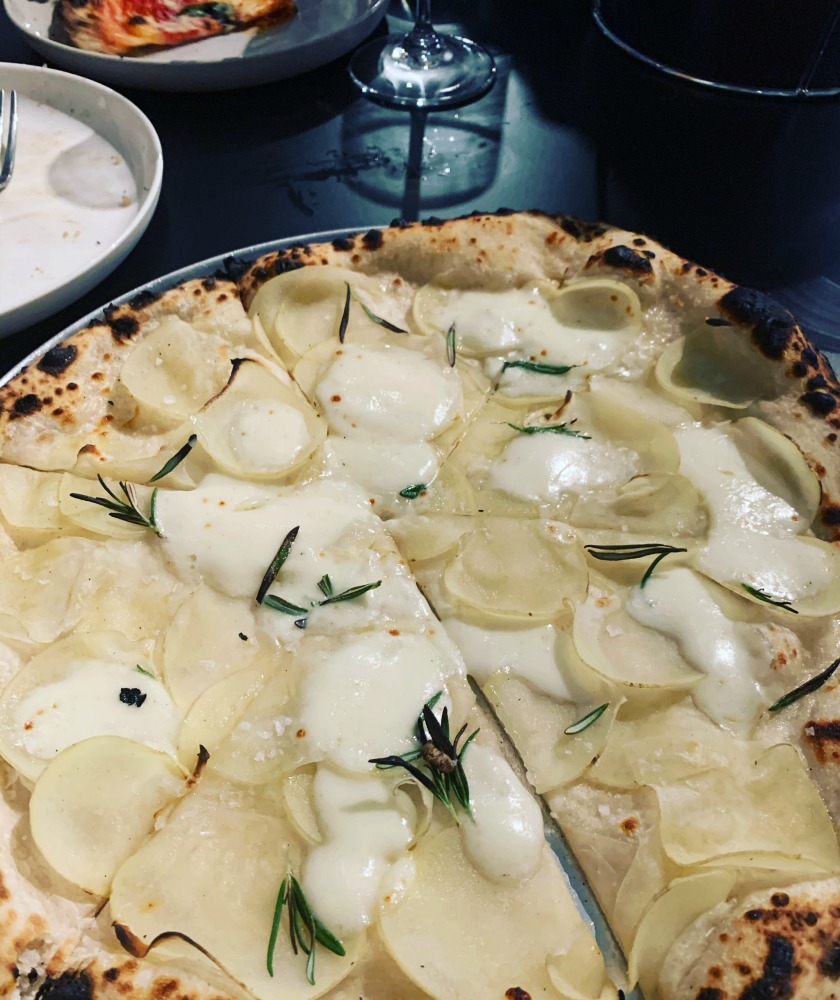 Think four ingredients max, and absolutely no pineapple! We’re talking combinations such as a tomato base with fior di latte, prosciutto and roquette, or the garlic olive oil base with fior de latte, potato and rosemary.