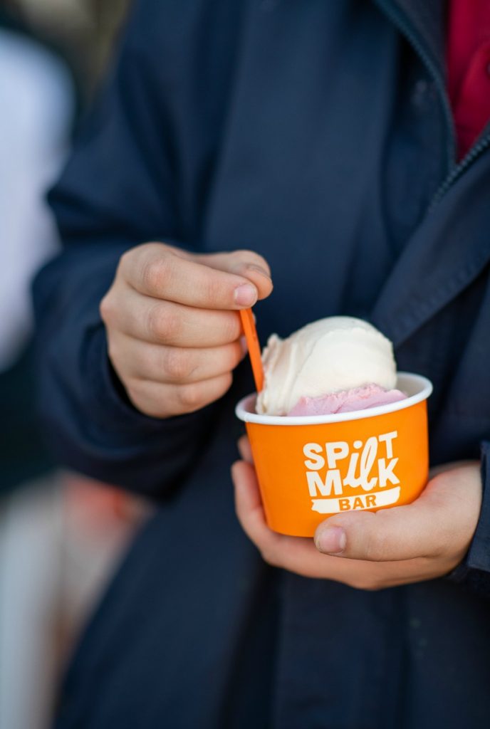 The Spilt Milk Bar ethos is one of environmental sustainability, using corn starch spoons and recycling foam takeaway containers when they are returned to store.