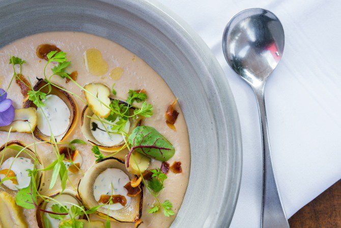 “Even the vegetable purées, we make them lighter. If you cook them sous-vide, you don’t need so much fat,” he says.