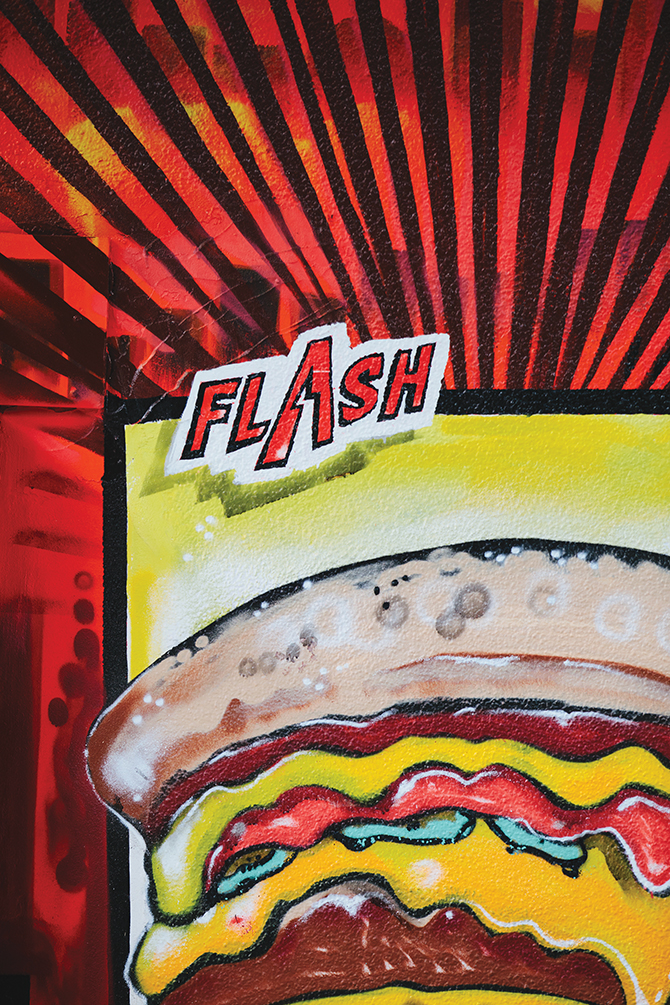But it’s not just good news for Canberra’s collective stomach. Flash Eats has transformed the previously grey and dingy city laneway with a riot of primary colours and graphic art.
