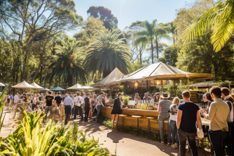 Treat yourself to a botanically-infused cocktail (like the Red Centre Negroni or Eucalypt Mule) or a beer to sip away on while enjoying the unique outdoor experience. And with the live stage close by the bar, it’s the perfect opportunity to settle down for a relaxing afternoon listening to industry professionals.