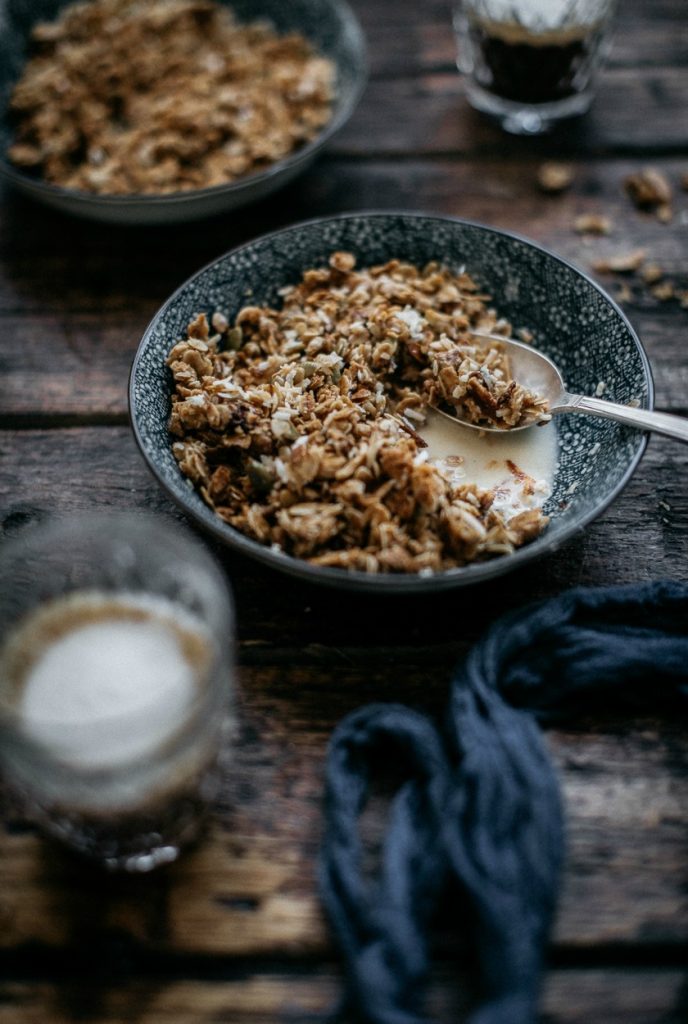 To serve: scoop a generous bowl-full of granola and add your desired amount of your chosen milk.