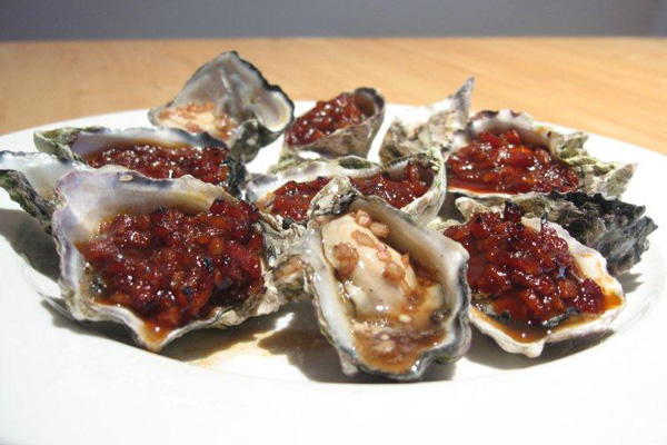 Mix all the ingredients together and taste. It is very important that it is not too sour or sweet. Keep adding either sugar or vinegar until you are happy. Leave it aside until you are ready to serve the oysters. Then either serve in a jug on the side or spoon about 1/2 tsp on each oyster.
