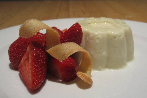 To serve, ease the panna cotta out of their moulds with a non-serrated knife, place some lovely fresh berries on the side and finish with the light tuile.