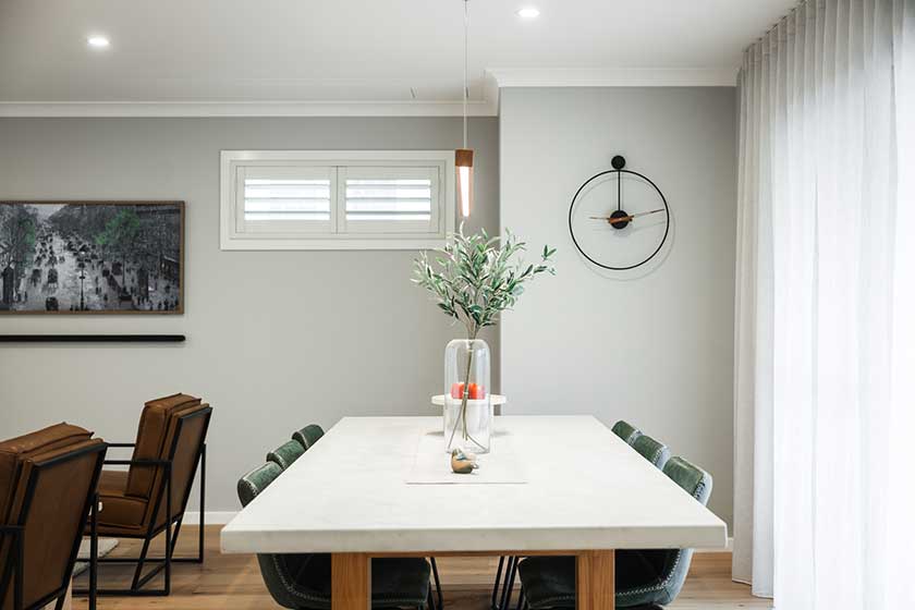 The neutral colour scheme and amount of light – artfully controlled by long linen drapes, plantation shutters and electric roller blinds over double-glazed windows – makes this a serene home, where entertaining would be a dream.