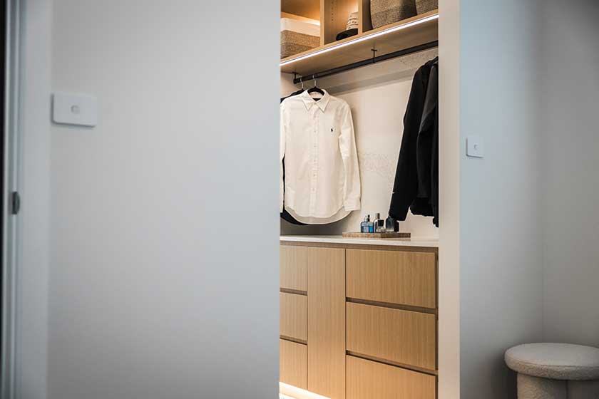 The walk-in robe in the master suite (complete with sensor light strips under the cupboards) is a case in point. From the engineered timber floors downstairs to the pristine and plush wool carpet upstairs, no corner of this spacious four-bed, two-bath with extra ensuite, and two-car garage home is spared the full upgrade.