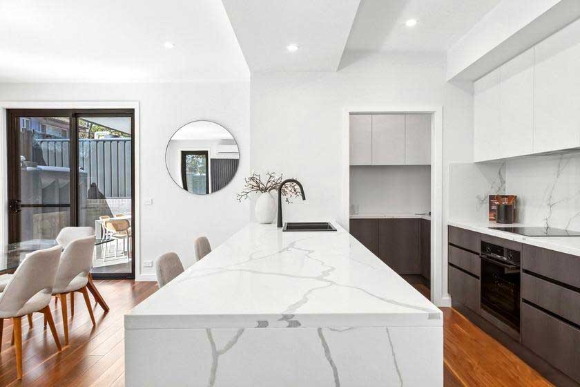 Move in and enjoy sunlit mornings in the split-level open-plan living areas, underneath vaulted ceilings with dramatic skylights. Or move out the back for some entertaining in the private alfresco courtyard, complete with outdoor kitchen (we are talking built-in sink, BBQ and glass-fronted fridge) under a timber-lined outdoor ceiling.