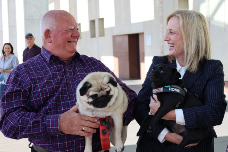 Rosie’s celebrating this auspicious milestone by being held in the arms of ACT Senator and Finance Minister Katy Gallagher because not only is Katy a self-avowed “mad dog lover” but because Katy was a founding member of ARF and has been a supporter ever since.