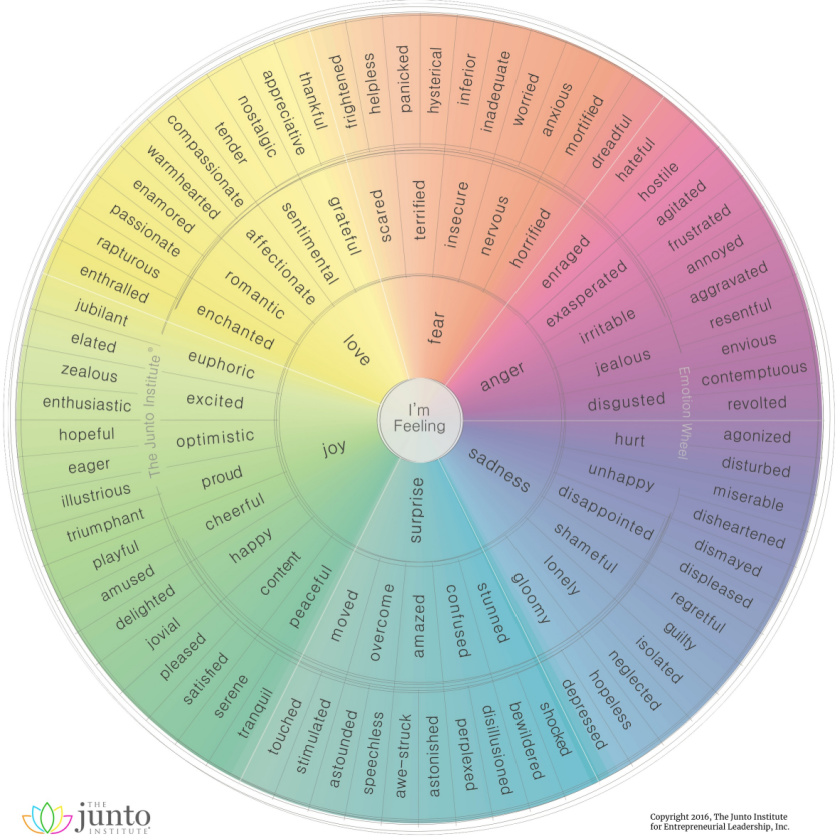 Enhancing our emotional intelligence (or EQ) can play an essential role in fostering a sustainable sense of well-being and the Wheel of Emotions from the Junto Institute is a practical, easy-to-use tool designed to help us facilitate this process.