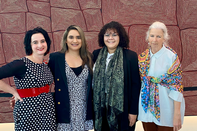 (Left to right) BroadAgenda editor Ginger Gorman, Co-chairs of the Uluru Youth Dialogue Allira David and Bridget Cama, UC’s Dr Holly Northam at the Equals Now symposium.