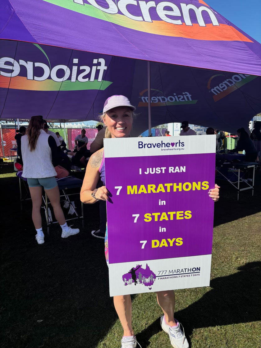 In 2024, the Australian Child Maltreatment Survey found that 28.5 per cent of Australians experienced child sexual abuse (CSA) – that’s over one in every four people. Since its launch in 2013, the Bravehearts 777 Marathon has raised over $2 million for the prevention and treatment of child sexual abuse, annually hosting seven marathons, in seven states and territories, over seven consecutive days – and Canberra local Jess Peil is running all of them for, momentously, the seventh year in a row. She flies out to the first location in Perth for a Monday 28 June start.