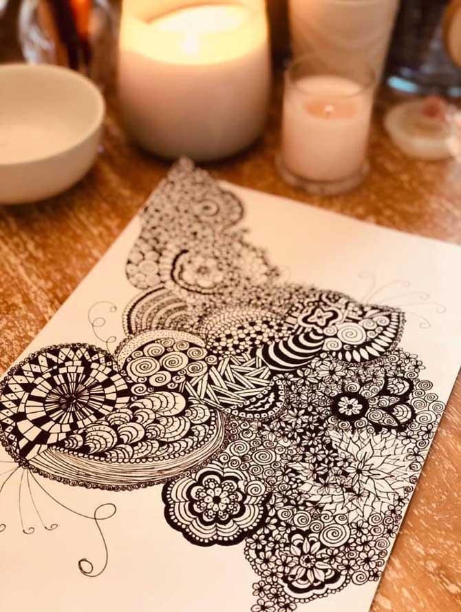 Fast forward to January this year, and someone mentioned a thing called ‘Zentangling’. I’d never heard of it, but was in the market for a bit more zen, so looked it up and found it was a twist on those elaborate doodles you do in boring meetings to keep yourself awake.