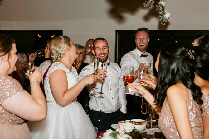 “We both love to eat and drink, so it was really important to us that our reception had this as a focus. We liked the idea of guests being able to select their own food, so the meal started with charcuterie and house made dips, followed with the entrée and main courses served sharing style. And to ensure guests could continue to mingle, drink and dance, we had dessert and our wedding cake served to a grazing table. The menu available at the Oak Room was varied, generous and absolutely delicious!