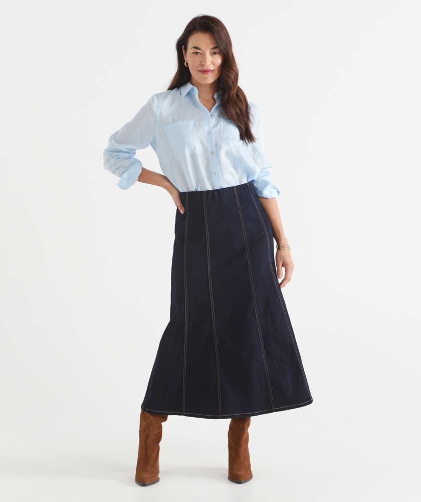 Denim skirts sit in that rare sweet spot between casual and polished, making them one of the hardest-working pieces in a considered wardrobe. A midi length is particularly useful if you want something that moves between occasions without much thought.