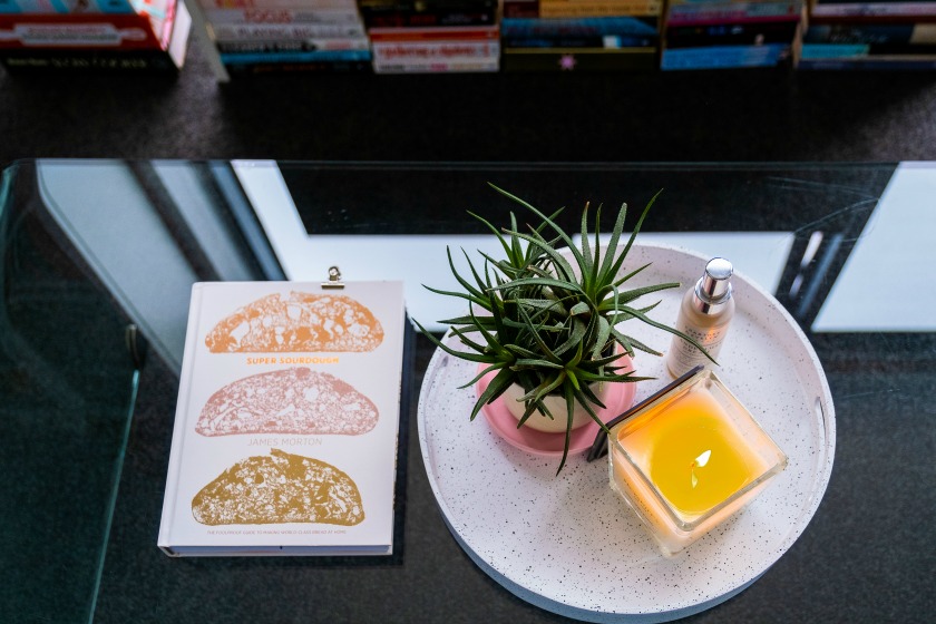 “We only need one pair of scissors—as long we know where they are,” explains Aline. “When COVID hit, we turned our bedroom dresser into a second desk [and] we don’t have a dining table, so we put on picnic parties to entertain guests.”