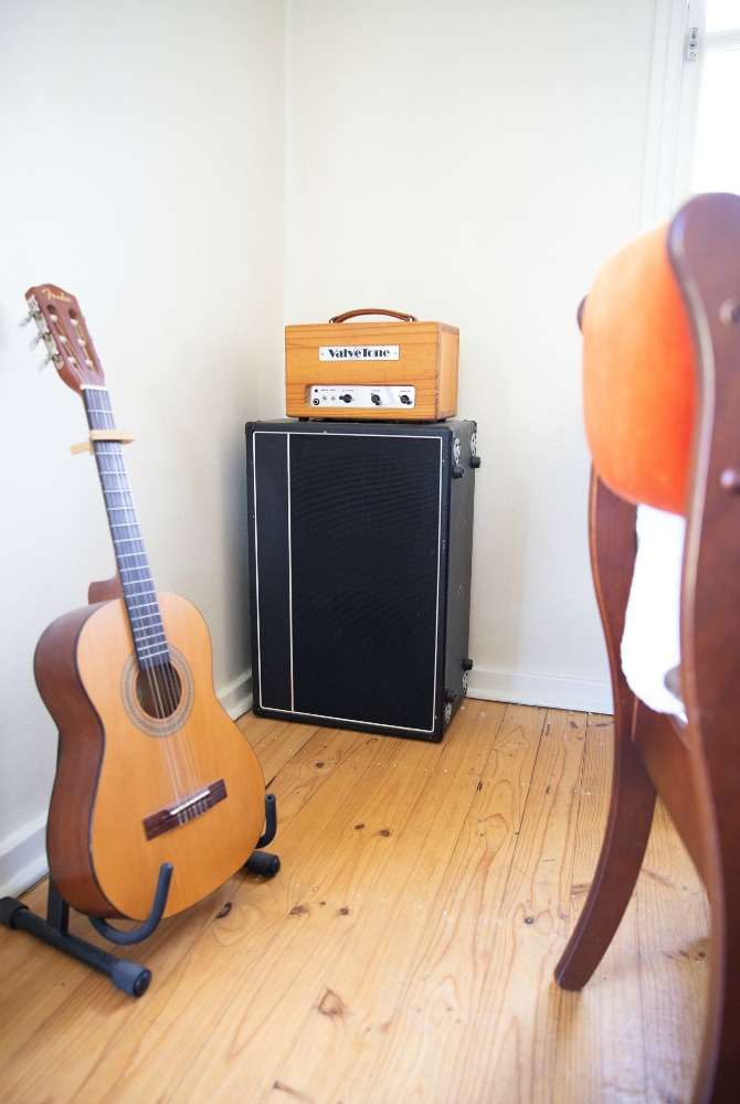 Yes, Chris’s life is as full as the back of his car (jammed tight with keyboards and footies) but his home is a simple and stripped-back place to stop, recharge and think of the next creative project.