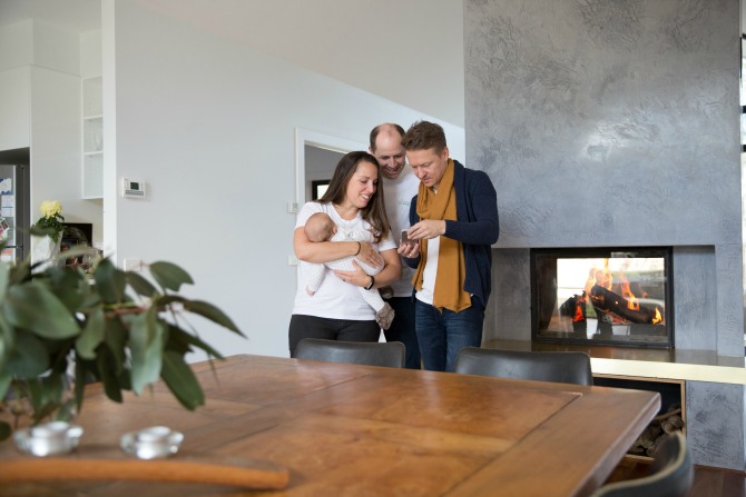 The beauty of the almost church-like main living area with its cathedral ceiling and huge swing-out doors is given added drama by the lack of clutter. I’m sure there will be prams, toys and other baby stuff to change that soon, but for the time being the OCD part in me loved the visual clarity.