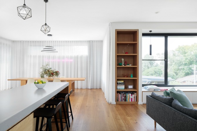 It helped that one of their running buddies is architect Paul Tilse. While pounding the pavement, they discussed plans for a brand-new home that made the most of the elevated views, stunning large tree in the backyard and, of course, relating the colours and materials with the aesthetics of the surrounding environment.