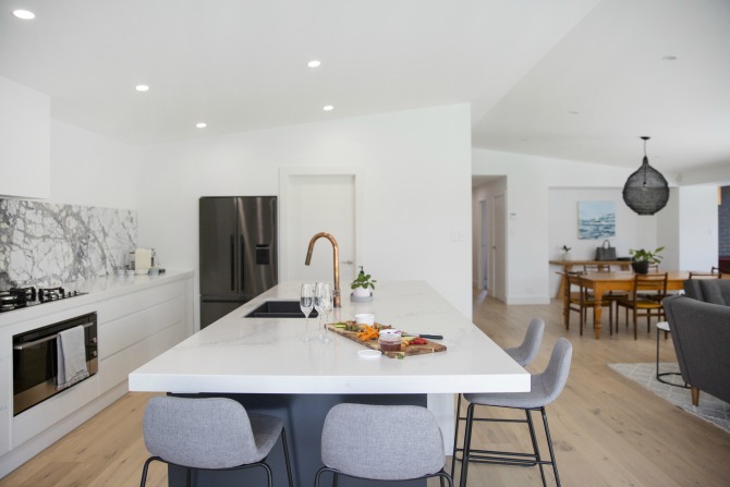As you can see, Shane and Cam have transformed a standard 1950s three-bedder into a stunning modern home which—I later learnt—is respectful to its original bones, specific features and natural surroundings.