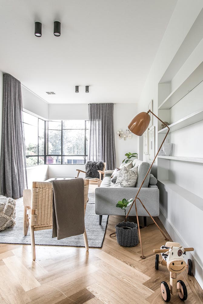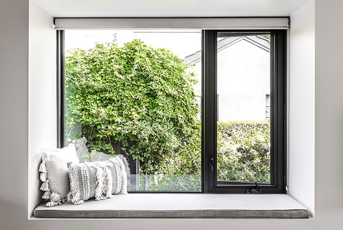 Working to emphasise the beauty of the original windows, Steven’s design response was to complement them with similar grey-boxed frames in the living room and children’s bedrooms for relaxing and reading.
