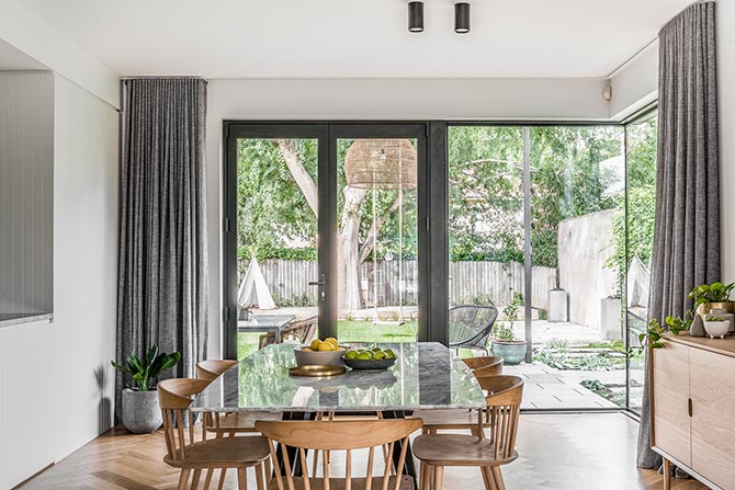 While Steven was ready to put his next generation architect’s stamp on the home, he also shared the process with Lisa, whose eye for interior design has provided some of the home’s most beautiful atmospheres. The existing layout of the front rooms and entry was kept as original as possible to maintain the house’s street character. But beyond those rooms a huge transformation took place. All bedrooms were moved to the rear to take advantage of the private and verdant backyard and to minimise street noise.