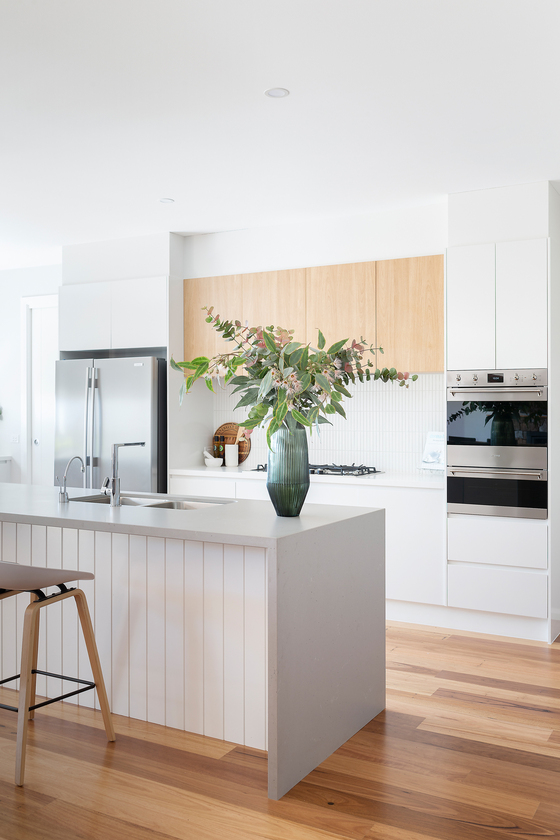 “Native flora like eucalyptus leaves, wattle or banksia look stunning in ceramic vases or for a more feminine, classic look, consider roses in a simple glass vase,” she says.