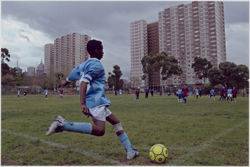 Flemington Eagles Striker Osman, representing the Flemington High Rise Housing Commission Flats, Atherton Reserve, Fitzroy, Victoria, 10 September 2005. Photo: Dave Tacon.